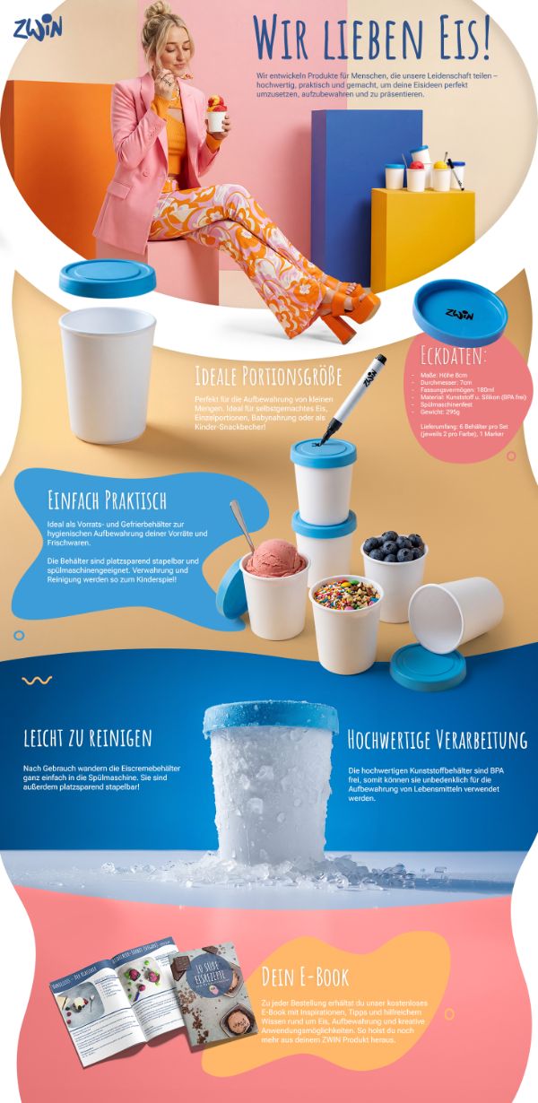 Für ZWIN haben wir ein altes, nicht optimal konvertierendes Listing von Grund auf neu entwickelt: mit einer klareren visuellen Führung, emotionaleren Produktbildern und einer Darstellung, die Nutzen und Unterschiede deutlich verständlicher macht. Ergänzt wurde das Ganze durch nahtlosen A+ Content, der sich ästhetisch exakt in die Listing-Welt und die Markenoptik einfügt.